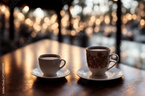 © Евгений Порохин, Obraz premium Cup of hot chocolate with cinnamon on wooden table, closeup