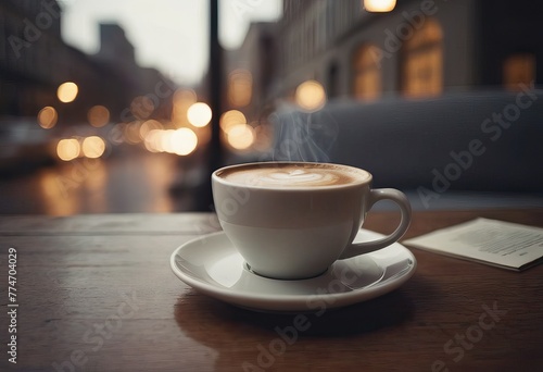 Obraz premium cup of hot coffee and tea on wood table besides window