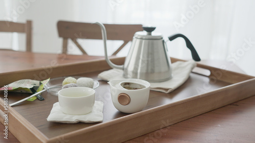 Fototapeta premium cup of tea and rice cake