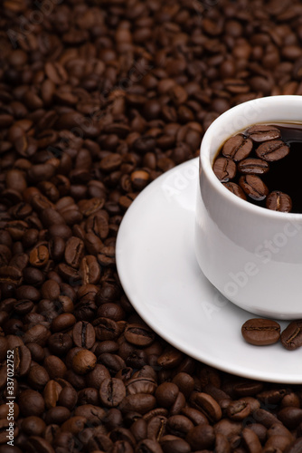 © Ekaterina, Fototapeta premium Cup with coffee beans on a dark background