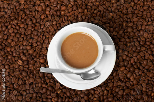 Fototapeta premium Cup with coffee, costing on coffee grain
