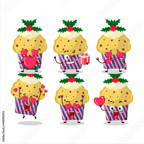 Fototapeta premium Cupcake with holly berry cartoon character with love cute emoticon