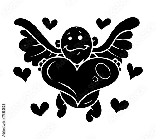 Obraz premium Cupid Presenting Heart Silhouette