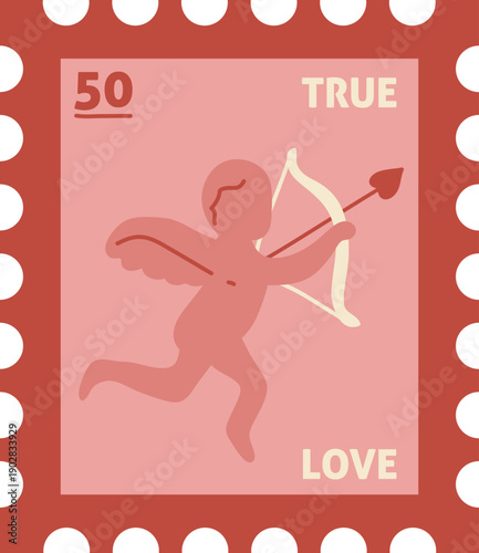 © Mykola Syvak, Fototapeta premium Cupid Shooting Arrow Romantic Postage Stamp