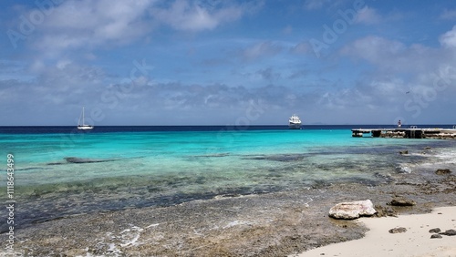 Fototapeta premium Curacao Skyline At Willemstad In Netherlands Curacao. Idyllic Beach. Nature...