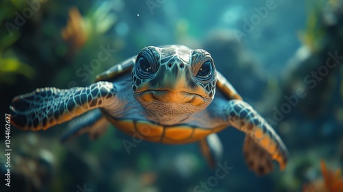 Fototapeta premium Curious Amazon River Turtle Swimming Underwater