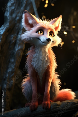 Obraz premium Curious animated fox in the forest