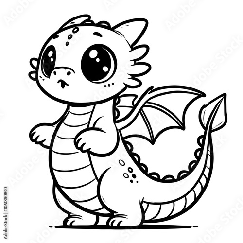 © Anastasiya, Naklejka premium Curious baby dragon coloring page