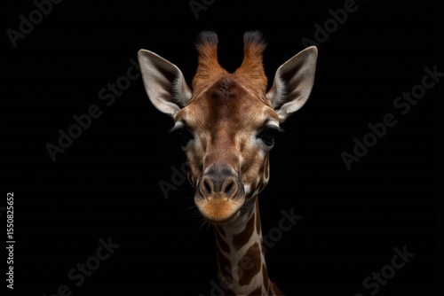 © Jeff, Naklejka premium Curious Baby Giraffe: Dramatic Close-up Portrait with Rim Lighting