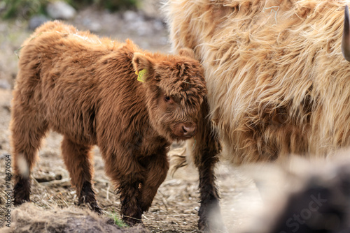 © Bossa Art, Fototapeta premium Curious Baby Highland Cow Explores the Rocky Terrain