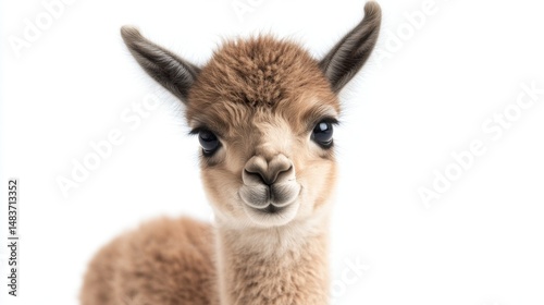 © nikomsolftwaer, Obraz premium Curious baby llama exploring soft textures in a bright studio environment adorable animal photography