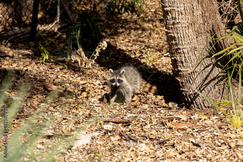 Naklejka premium Curious baby raccoon Procyon lotor on a tree in Bonita Springs