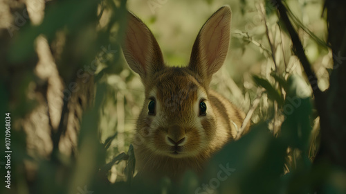 Fototapeta premium Curious Bunny Hiding in the Bushes, rabbit, cute, adorable, fluffy, ears