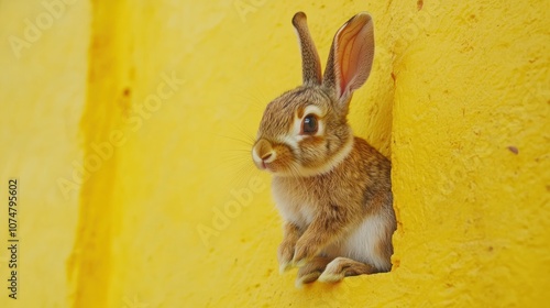 Fototapeta premium Curious Bunny Peeking Through Hole