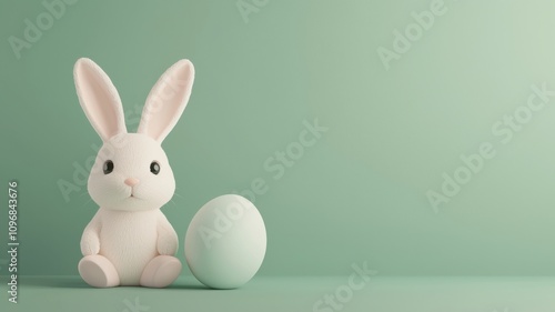 Obraz premium Curious Bunny with Pastel White Egg