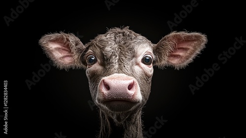 © MAKASIHMAS SIDNEY, Fototapeta premium Curious calf portrait, dark background, farm animal