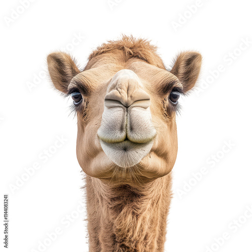 © Pngs , Fototapeta premium Curious Camel Portrait on White Background for Wildlife and Nature Projects Transparent Background