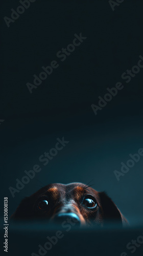 © Clemency, Fototapeta premium Curious Canine Face Emerging in Shadows Against a Black Background