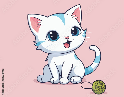 © yavuz, Obraz premium Curious Cartoon Kitten with Playful Expressions and Adorable Poses