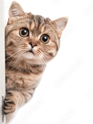 Obraz premium Curious Cat Peeking From Behind a Wall