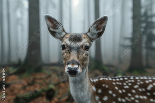© Ari, Fototapeta premium Curious deer in misty forest