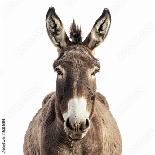 © Viktoriia, Obraz premium Curious donkey gazing into the camera against a bright, pure white background