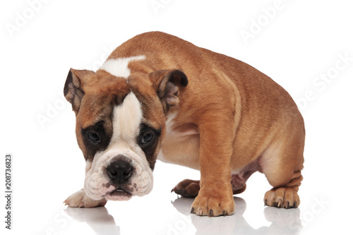 © Viorel Sima, Obraz premium curious english bulldog looking down while standing