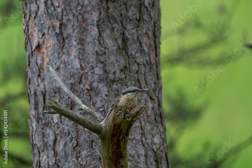 © Krzysztof, Obraz premium Curious Eurasian Nuthatch Peeking from a Natural Tree Perch