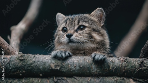 Obraz premium Curious kitten peering over branches