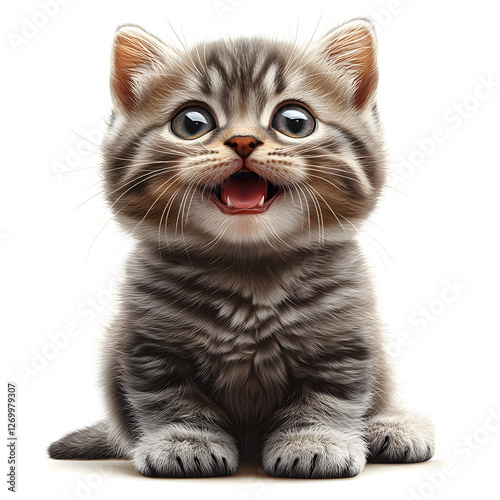 © Olena, Obraz premium Curious kitten with big eyes playfully posing for attention in a bright setting