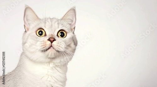 © K-MookPan, Fototapeta premium Curious light gray cat with large yellow eyes on white background