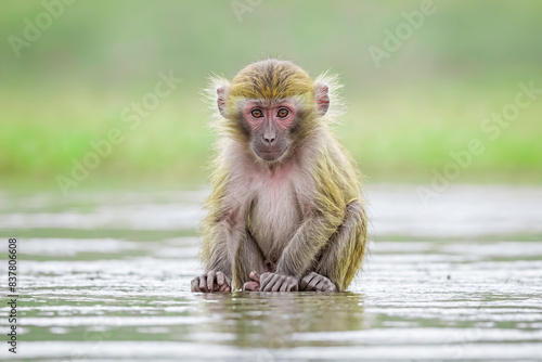 © Rysak, Naklejka premium Curious monkey sitting in the water