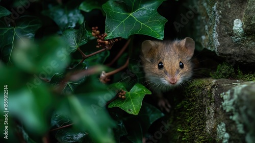 Fototapeta premium Curious Mouse Hidden Among Greenery