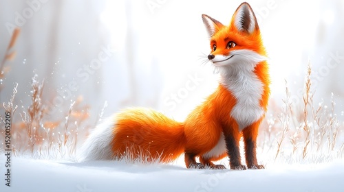 © Bussakon, Fototapeta premium Curious orange fox standing in a winter landscape