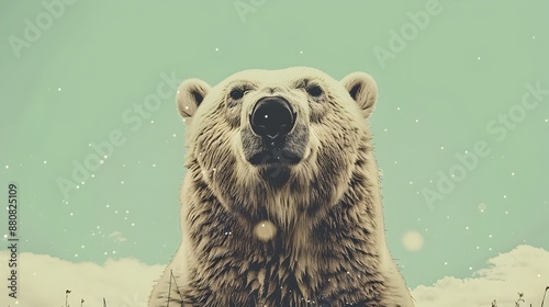 © Nutthanon, Fototapeta premium Curious Polar Bear in Icy Tundra Landscape Under Dramatic Cloudy Sky