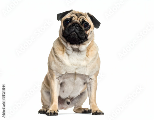© Nanas, Obraz premium Curious Pug Dog Adorable Tilted Head Portrait, Isolated on White