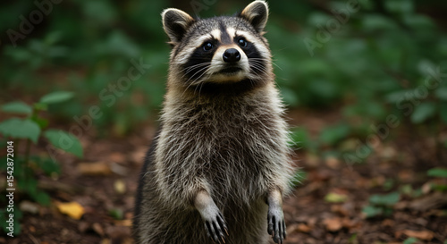 © MUHAMMAD, Fototapeta premium Curious Raccoon in Natural Forest Habitat