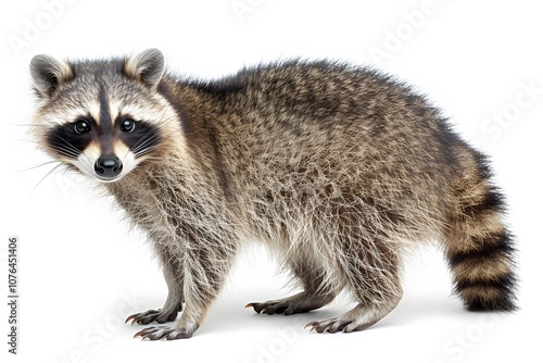 © D, Fototapeta premium Curious Raccoon on White Background - Wildlife Photography for Nature Posters