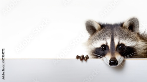 Fototapeta premium Curious Raccoon Peeking Over Edge