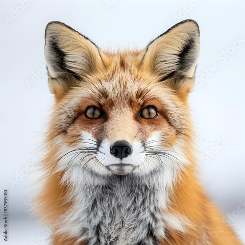© Bussakon, Fototapeta premium Curious Red Fox Exploring a Grassy Meadow Against a White Background