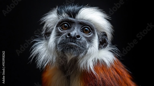 © BerkahStock, Fototapeta premium Curious Red-shanked Douc Langur Portrait