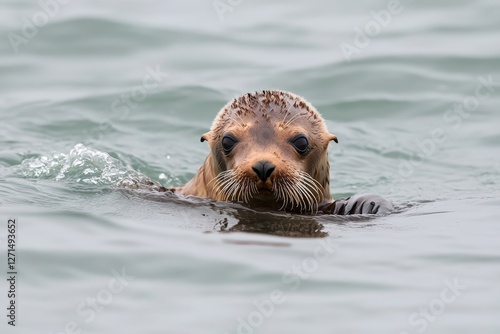 © vuang, Fototapeta premium Curious sea otter swimming in calm waters