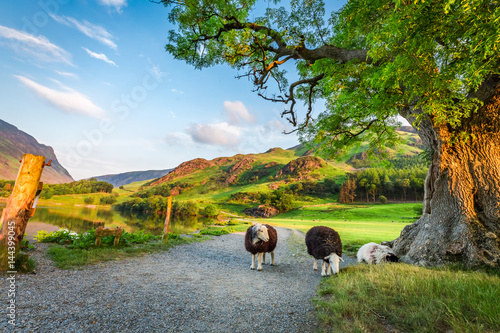 © shaiith, Obraz premium Curious sheeps on pasture in summer, Lake District, England