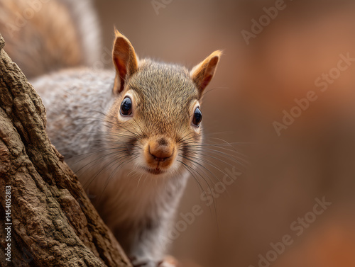 Fototapeta premium Curious Squirrel Peeking from Tree / 나무에서 고개 내민 호기심 많은 다람쥐