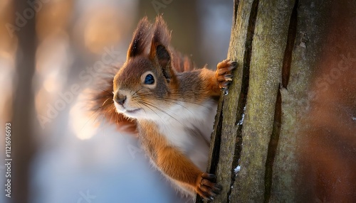 Fototapeta premium Curious Squirrel Peeking on a Tree in Forest
