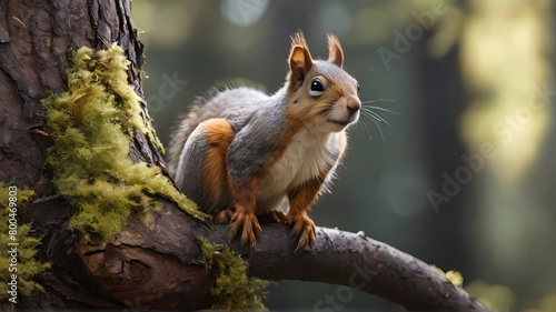 © vallel.-., Fototapeta premium Curious Squirrel Perched on Tree Branch in Woodland, Generative AI