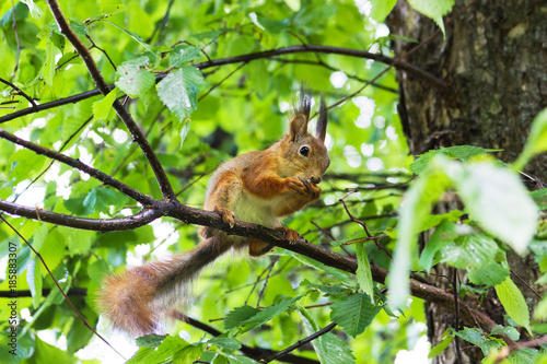 © Stasiuk, Fototapeta premium Curious squirrel. Red Squirrel. Squirrel. Forest. Spring.