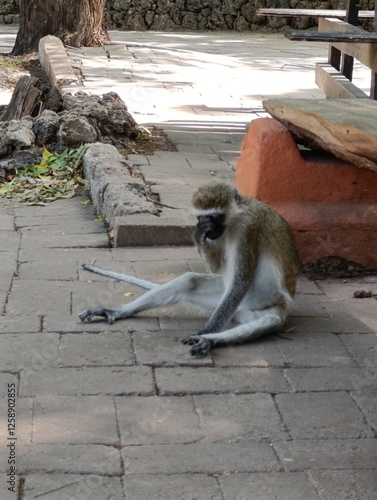 © MR TEMP, Obraz premium Curious Vervet Monkey in the Wild – Playful Primate of Africa