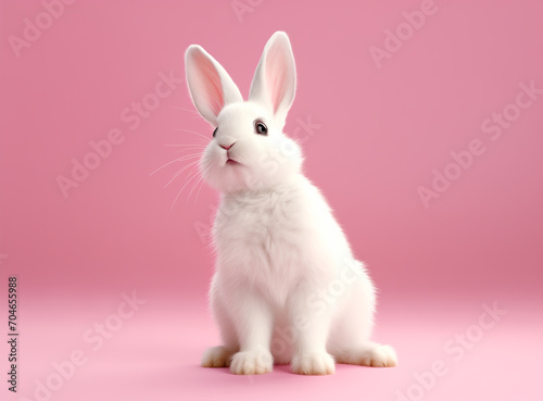 © Cla78, Obraz premium Curious white bunny on a pink background