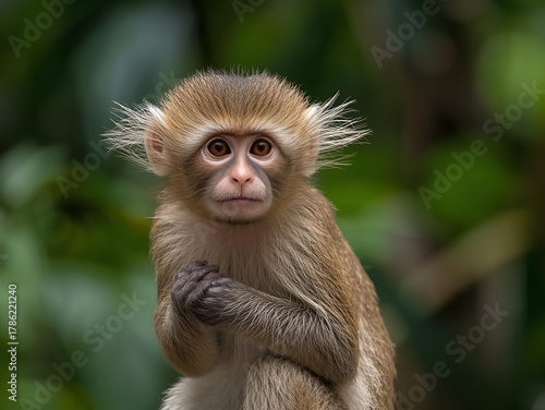 © Mustadir, Obraz premium Curious wild monkey looking at camera in tropical forest